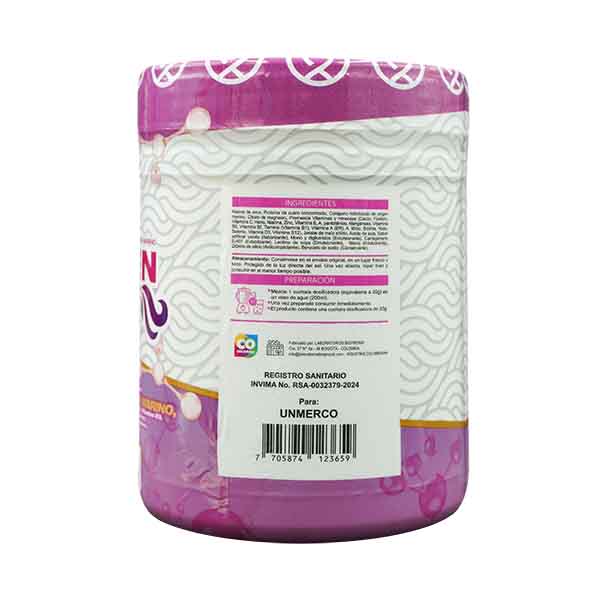 Alimento en polvo a base de Harina de arroz, Proteína de Suero, Colágeno Hidrolizado de origen marino, Citrato de magnesio, Premezcla vitaminas y minerales.
