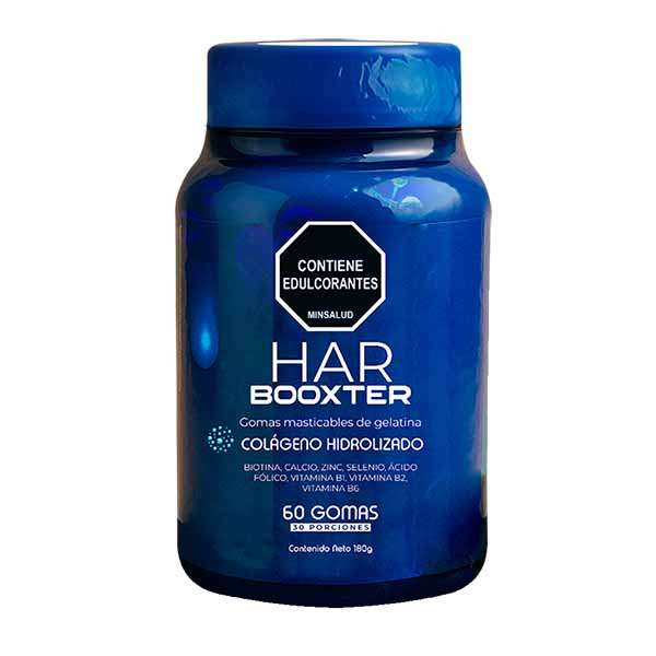 Gomitas masticables sabor a morazul con Colágeno hidrolizado, Biotina, vitamina A, vitamina C, vitamina E, vitamina D, vitamina B1, vitamina B2, vitamina B6, vitamina B12, ácido fólico, hierro, zinc y potasio.