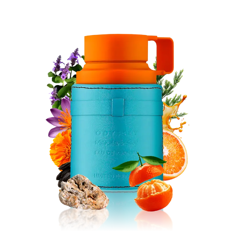 Odyssey Mandarin Sky se abre con un estallido de mandarina, bergamota y pimienta negra, seguido de un corazón de lavanda, especias y flor de azahar. Su base profunda y seductora, con almizcle, ámbar, cedro y vetiver, otorga un final cálido y elegante, asegurando una estela intrigante y refinada.