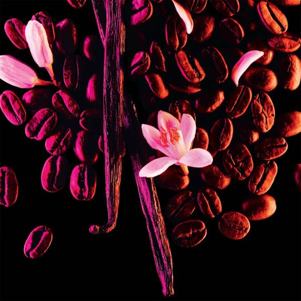 En el corazón de la fragancia, el aroma intenso del café se combina con el jazmín, creando una mezcla floral y gourmand que es a la vez energizante y adictiva. Finalmente, las notas de fondo de vainilla, pachulí, cedro y madera de cachemira aportan una profundidad cálida y seductora que perdura en la piel.