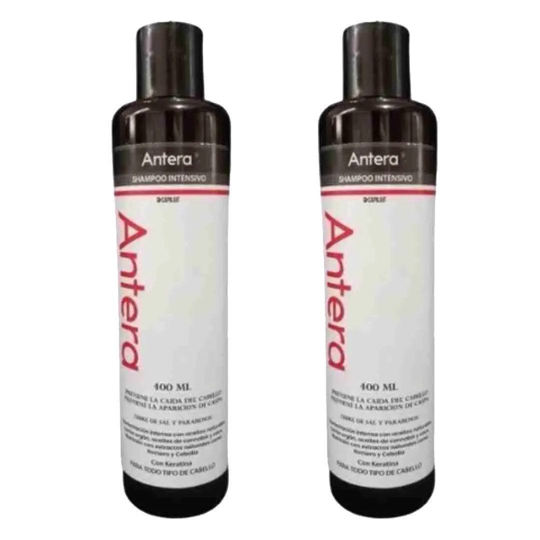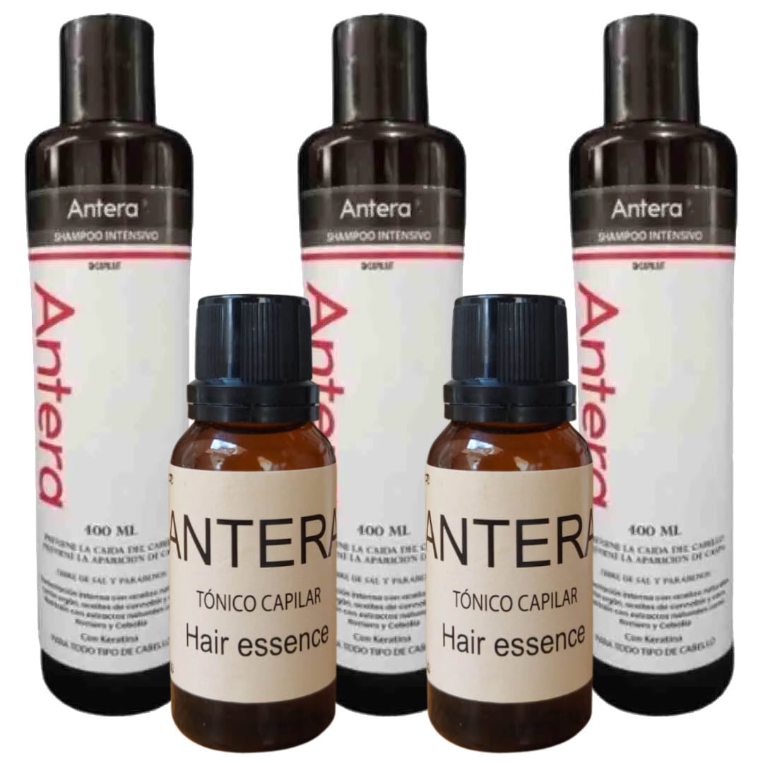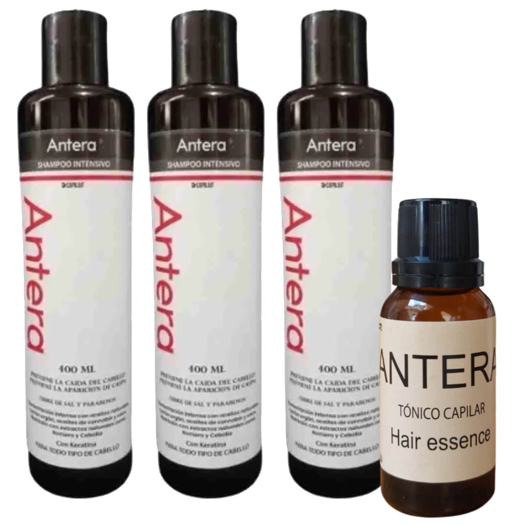 El champú ANTERA ofrece un equilibrio para el cabello previniendo su caída y la aparición de caspa humectando con el uso de aceites y extractos naturales que brindan ácidos grasos naturalmente brinda suavidad acondicionamiento y resplandor al cabello además aporta aminoácidos y vitaminas que no tiene, fortalecer el folículo capilar.